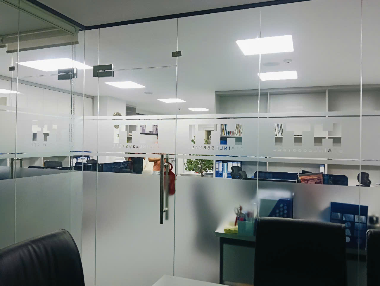 Dán logo văn phòng Dán kính thủy tăng độ mát chống chói chống nắng tăng độ mát riêng tư bên trong wrapviet nhận thi công trên mọi miền tổ quốc-wv415