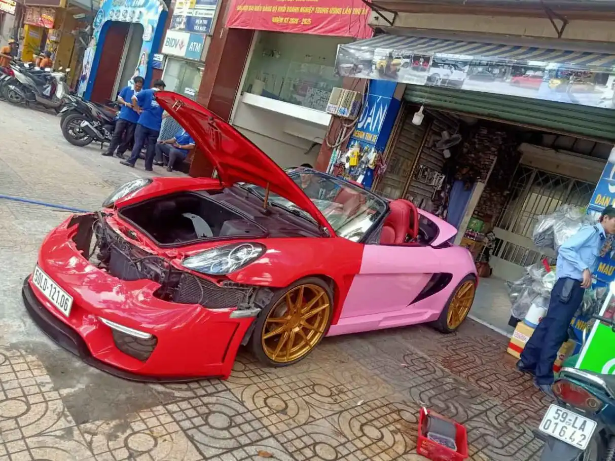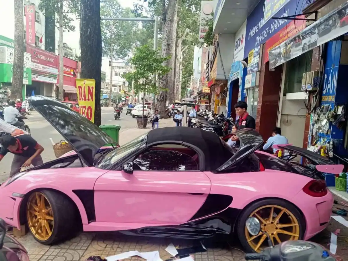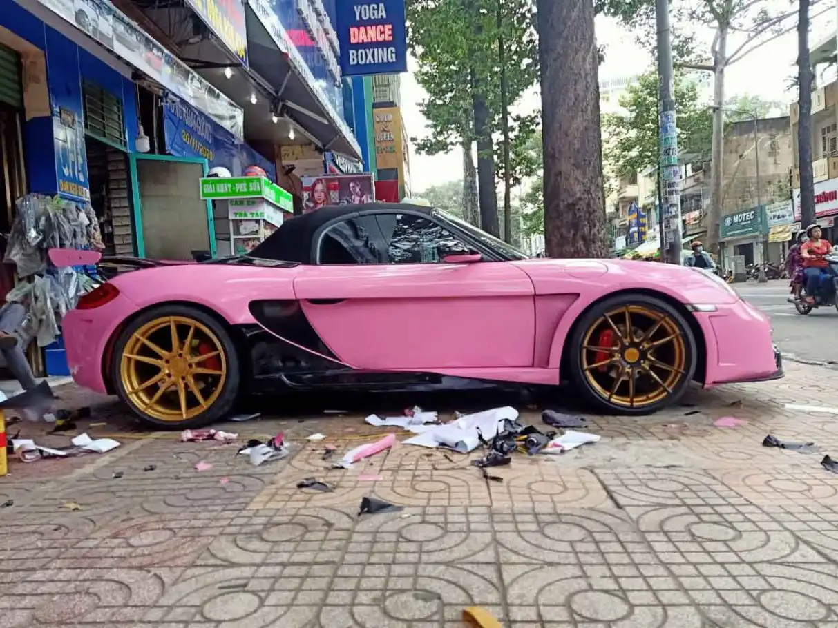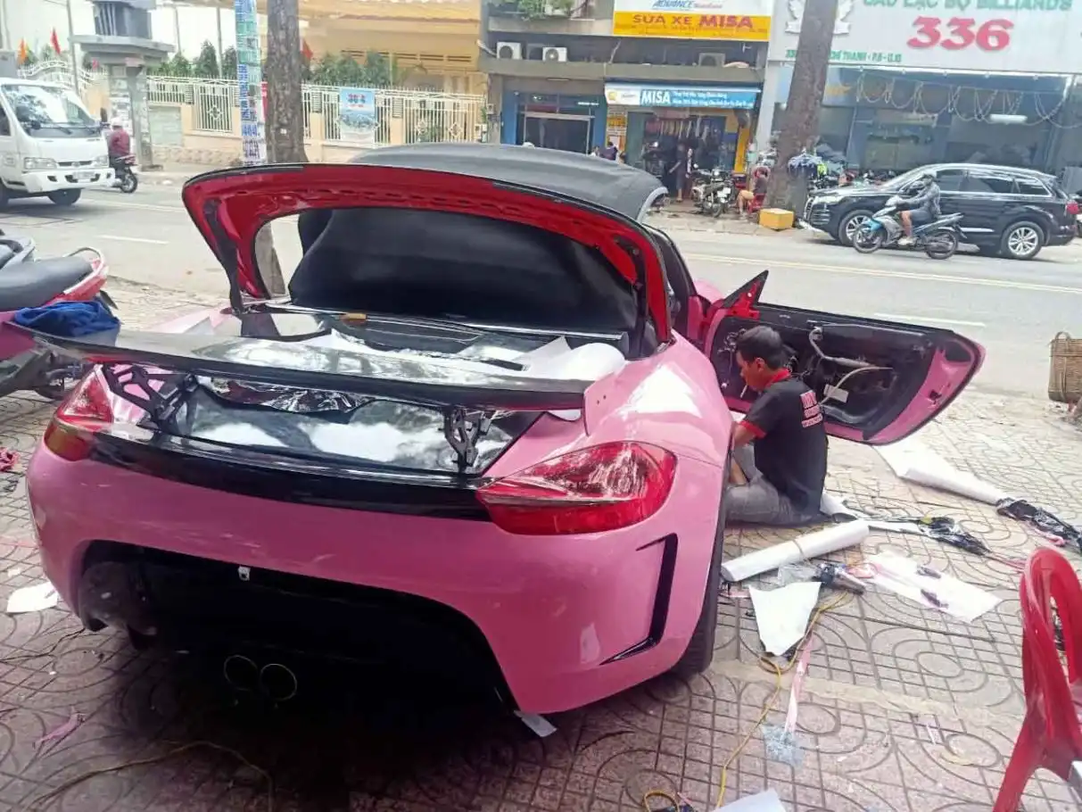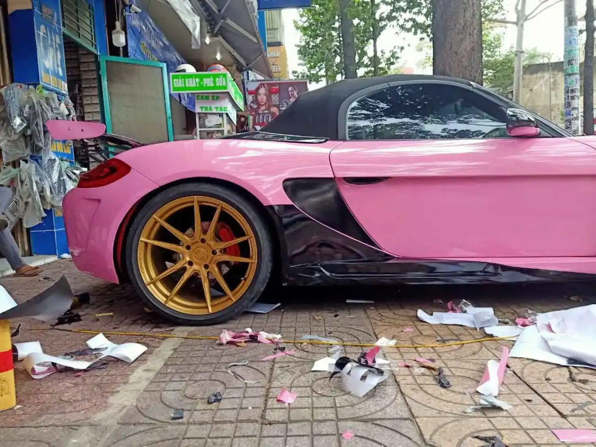 Porsche 718 Boxster mui trần wrap full hồng bóng- wv41