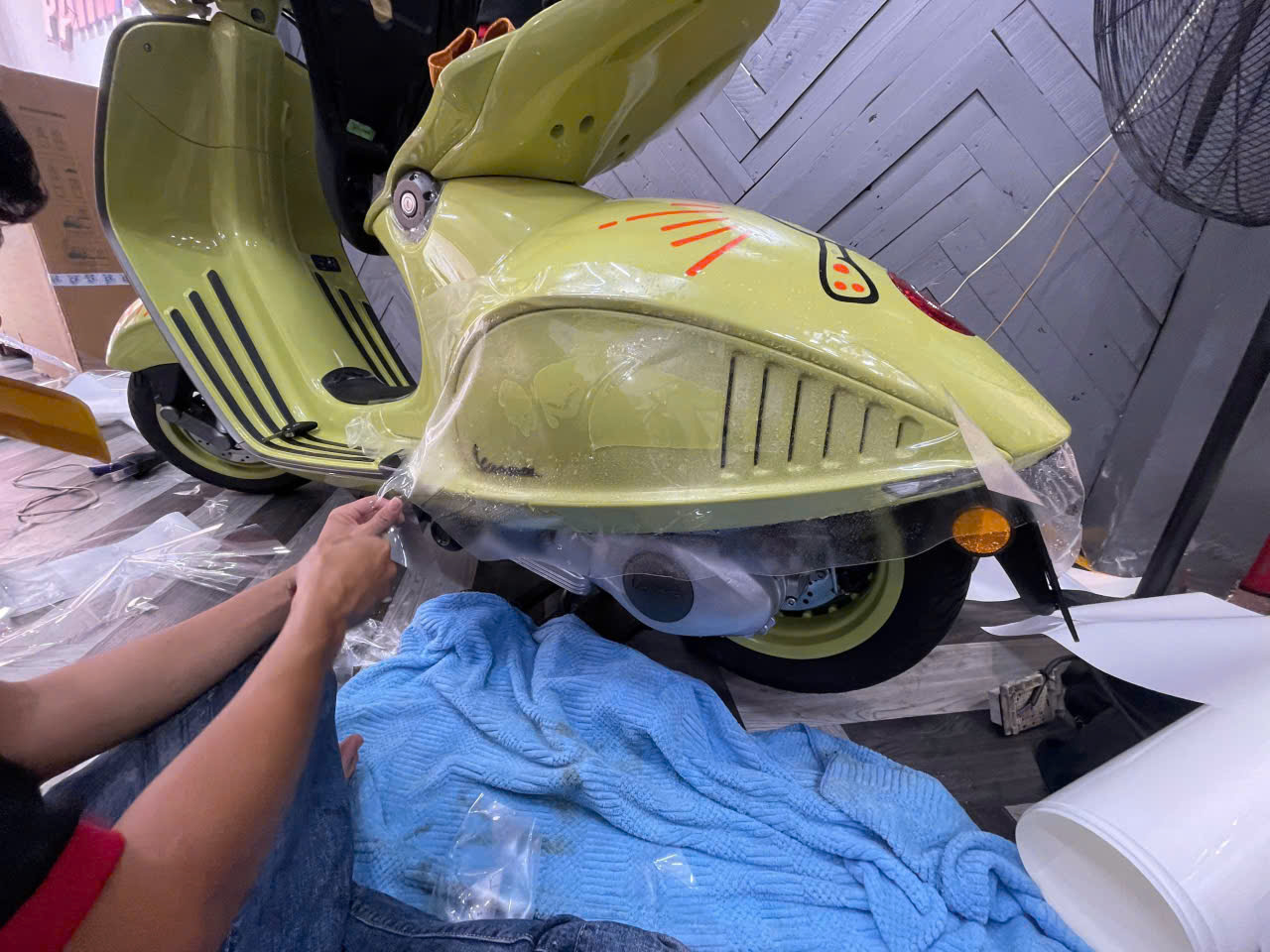 Vespa Piaggio wrap full ppf cao cấp tăng độ bóng bảo vệ sơn chống trầy xước ( khách hàng cần lưu ý ppf có rất nhiều loại có loại ppf còn rẻ hơn cả keo trong 3 lớp của wrapviet ạ )-wv519