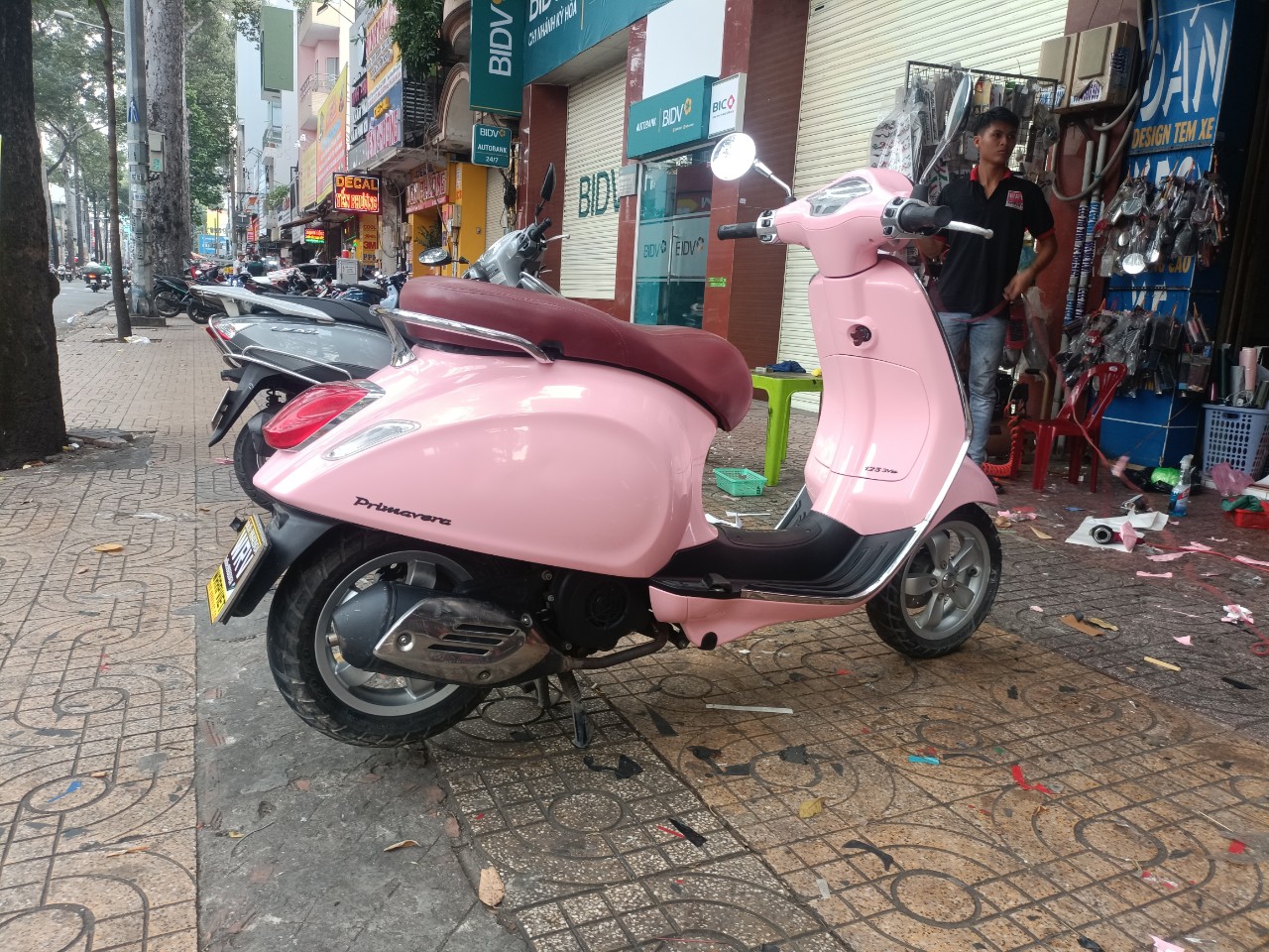 Vespa Primavera wrap full film hồng bóng cao cấp cho phái đẹp-wv150