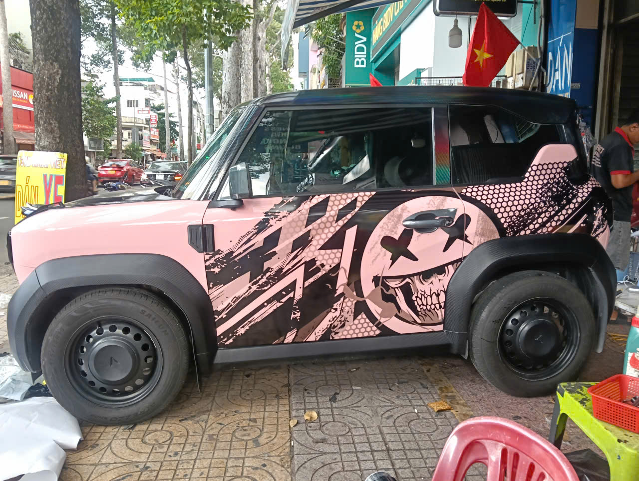 VinFast VF 3 wrap full 1/2 trên carbon 6d ánh 7 màu khi ra nắng và có ánh đèn chiếu vào lên tem theo yêu cầu-wv482